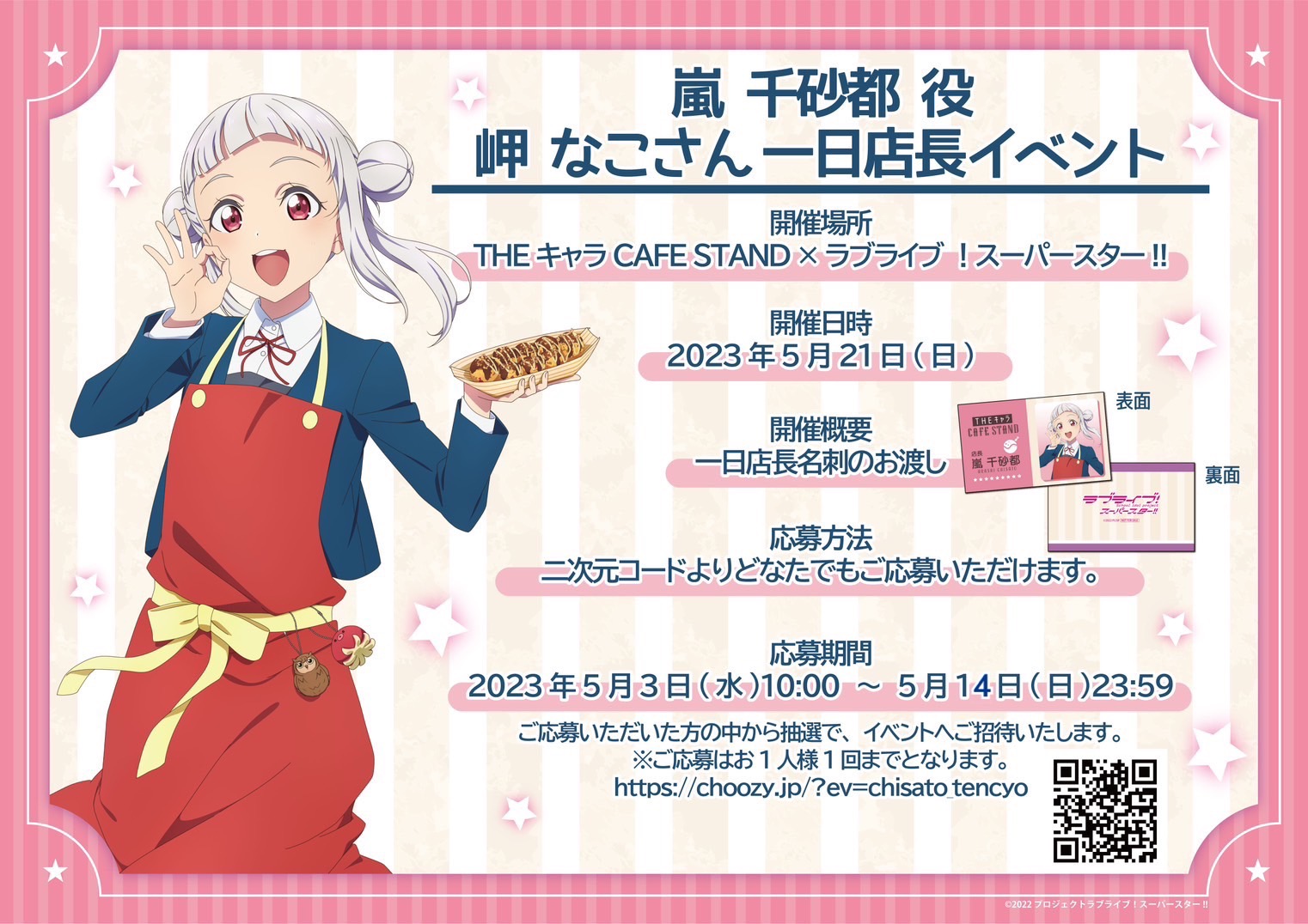 『THEキャラCAFÉ STAND×ラブライブ!スーパースター!!』より、嵐 千砂都役 岬 なこ 一日店長イベント開催のお知らせ