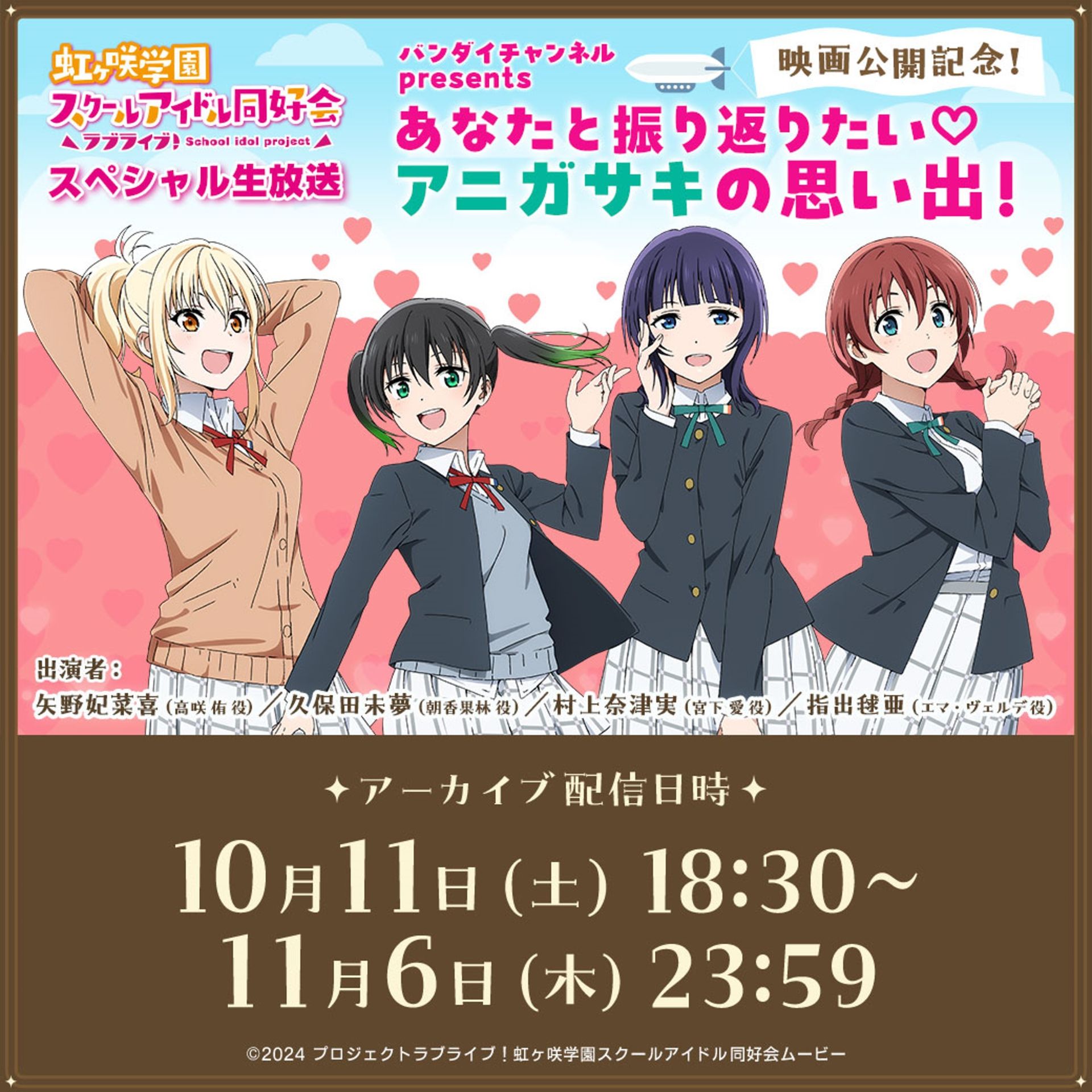バンダイチャンネルpresents 「ラブライブ!虹ヶ咲学園スクールアイドル同好会スペシャル生放送 映画公開記念!あなたと振り返りたい♡アニガサキの思い出!」アーカイブ配信のお知らせ!